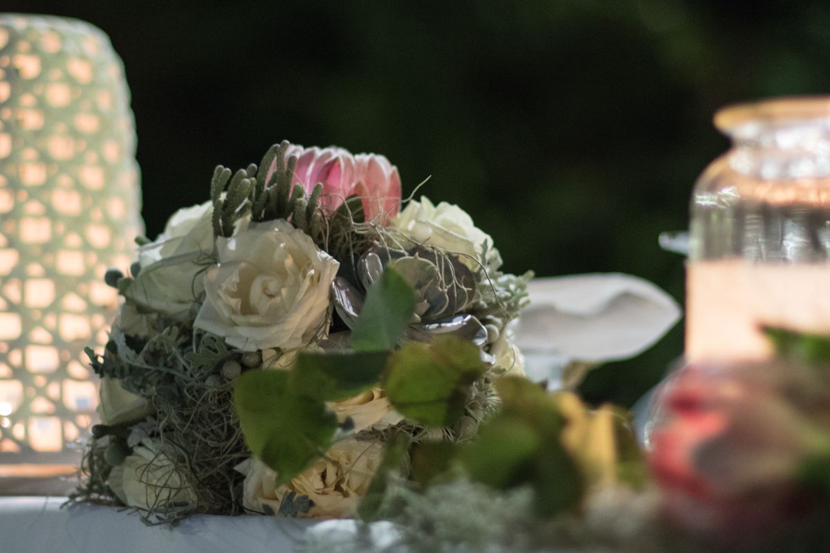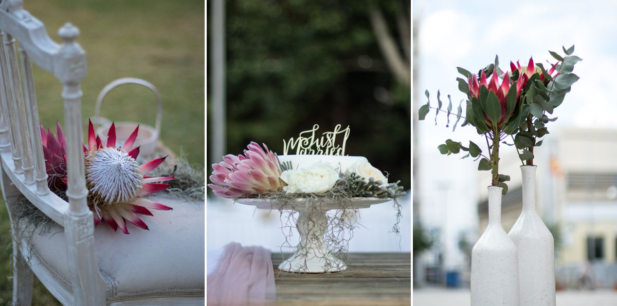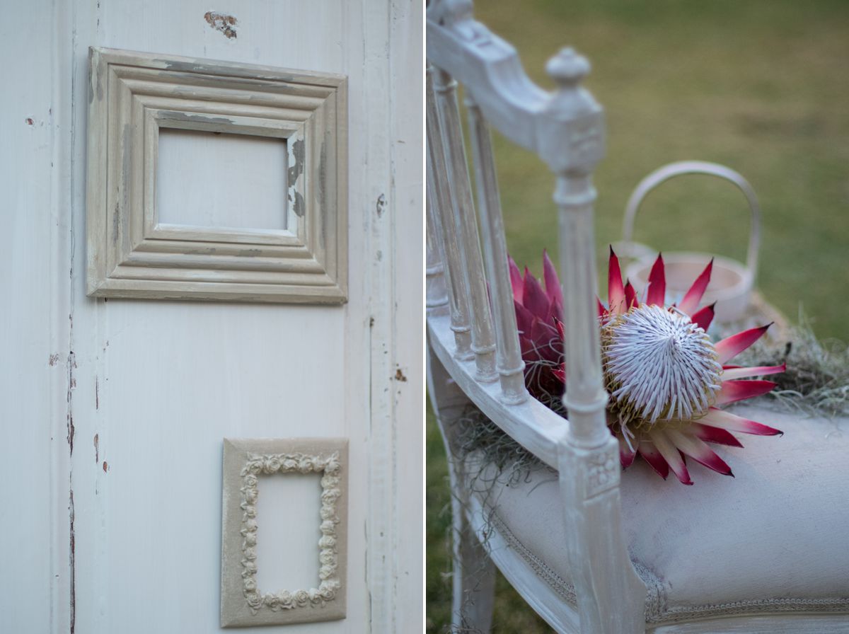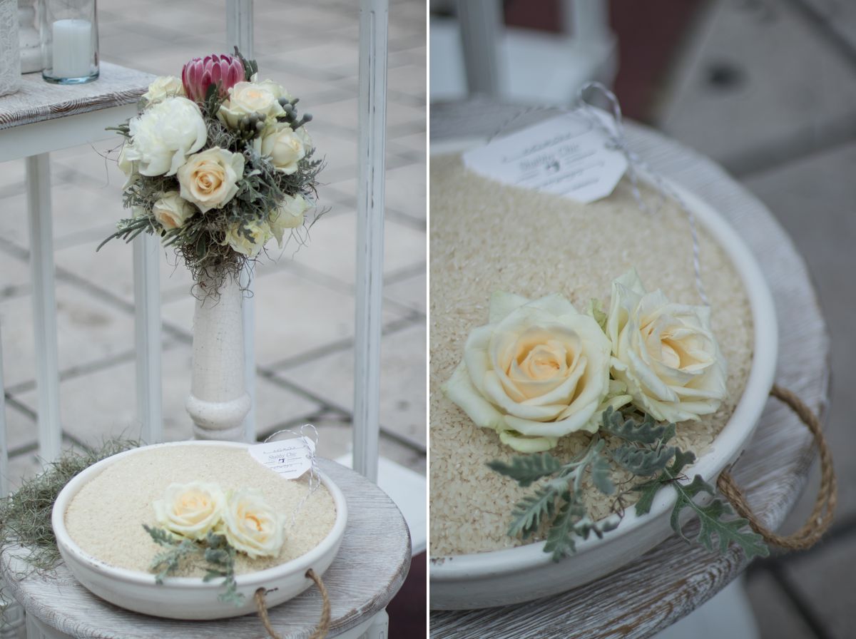 Με ένα γλυκύτατο ρομαντικό στυλ και λεπτομέρεια σε αντικέ δαντέλα, λινό και μοτίβα λαχουριών οργανώσαμε και διακοσμήσαμε τον γάμο και τη βάπτιση της μικρής τους. Ξεβαμμένα λευκά ξύλινα αντικείμενα να τονίζουν ακόμη πιο πολύ το ρομαντικό στοιχείο, και η ομορφιά του εξωτικού πρωτέα που καλλιεργείται στη Κρήτη, να κυριαρχεί ανάμεσα μας.